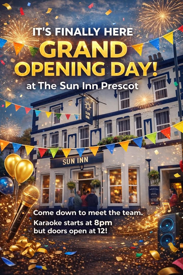 #SunInnPrescot #GrandOpening #CommunityHub #FamilyFriendly #PetFriendly #KaraokeNight #Prescot #LocalPub #GoodVibes